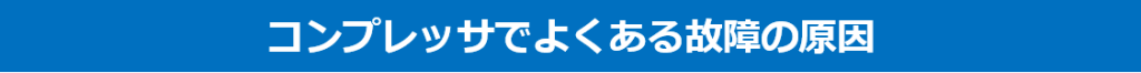 稼働時間や設置環境によってはコンプレッサにトラブルが生じ、放置すると大きな代償につながるかもしれません。そうなった場合、「エアを使用する設備が止まり、生産がストップしてしまう…」なんてケースも考えられます。そのような事態を未然に防ぐために、コンプレッサで起こりうるトラブルを把握しておく必要があります。