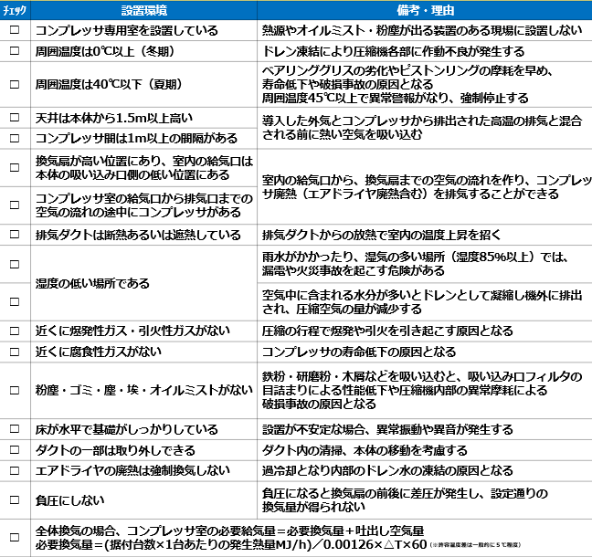 今お使いのコンプレッサの使用環境は大丈夫ですか?