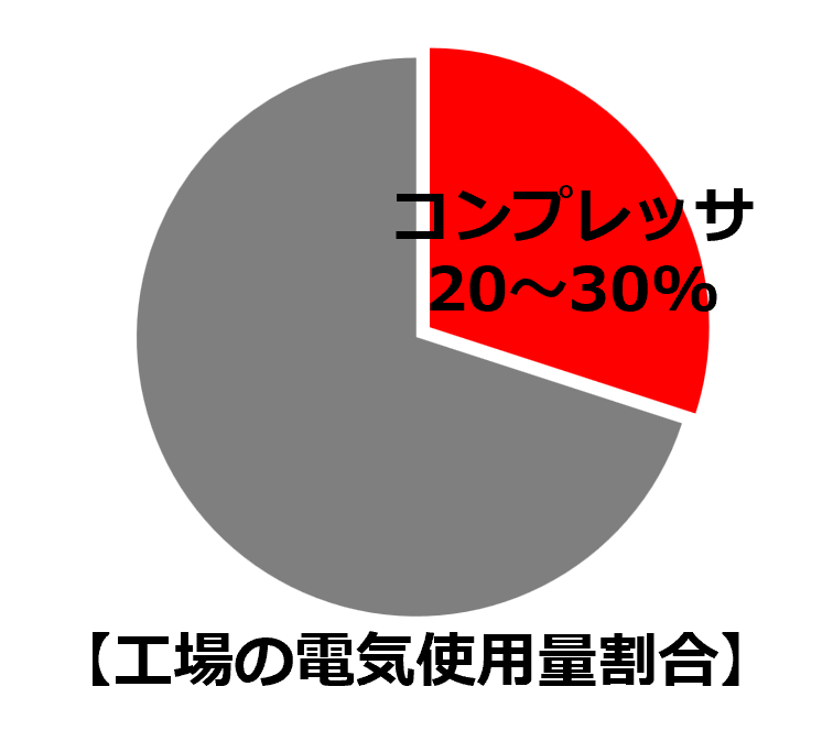 コンプレッサは工場全体の電力消費量のうち、実に20~30%の割合を占める機器で数ある生産設備の中でも突出して高い割合となります。コンプレッサは、長時間稼働するため、わずかな効率低下が大きな電力ロスに直結します。そこで重要になるのが、省エネと不可分な点検・メンテナンスです。定期的な点検で最適な稼働状態を維持し、空気漏れやフィルターの目詰まりといった非効率な状態を早期に発見・修正することが、無駄な電力消費を抑え、大幅なコスト削減を実現する鍵となります。
